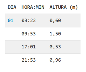 ¿Cómo leer e interpretar la tabla de mareas?